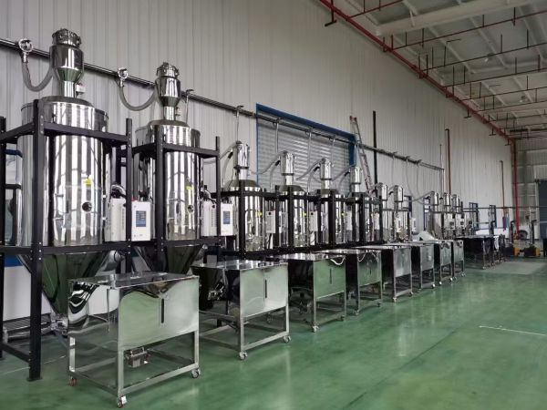 中央供料系統(tǒng)采用一臺(tái)機(jī)一根管,密封式回路設(shè)計(jì)方式,保證整個(gè)系統(tǒng)運(yùn)行穩(wěn)定,絕無塑膠回潮、堵料現(xiàn)象發(fā)生。它配合中央干燥機(jī)(除濕機(jī))系統(tǒng)使用,可使干燥空氣對(duì)原料進(jìn)行再次干燥,防止干燥后的塑膠回潮,同時(shí)在每個(gè)輸送循環(huán)后對(duì)輸送管進(jìn)行清理,確保管道內(nèi)沒有殘料。在避免原料回潮的同時(shí)也保證加入注塑機(jī)中原料一致性,在真空負(fù)壓同進(jìn)作用下,原料中原有的粉塵經(jīng)過過濾器(集塵器)系統(tǒng)濾出,有利提高產(chǎn)品質(zhì)量。